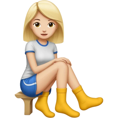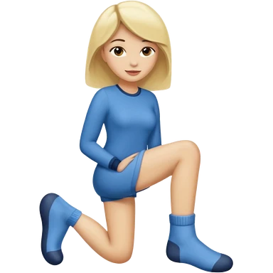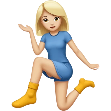 Femme blonde déguisée en chaussette géante emoji
