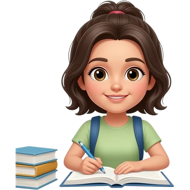 Girl with black hair doing homework emoji