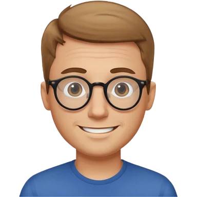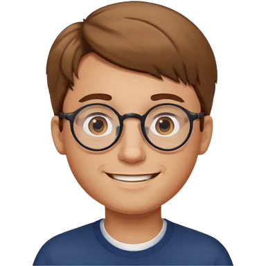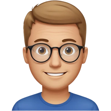 homme cheveux court marron clair sans barbe sourrir avec lunettes rondes emoji