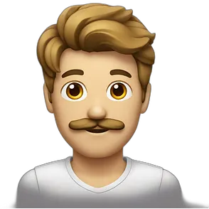 Un homme blanc cheveu noir et moustache noir et cheveux noir plaqué emoji