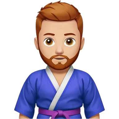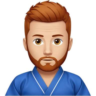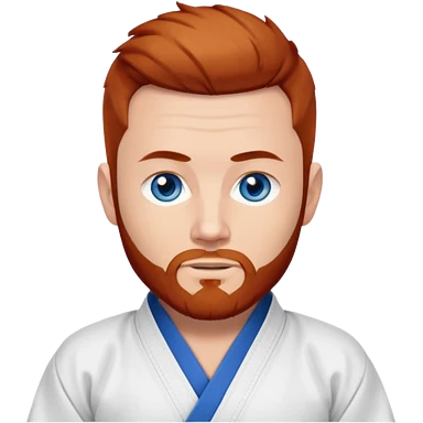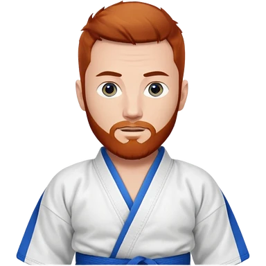 homme blanc, yeux bleu, cheveux brun très court avec barbe rousse et boucle d'oreille doré à l'oreille gauche avec kimono de jiu!jirsu emoji