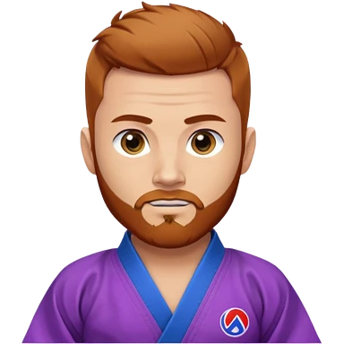 homme blanc, yeux bleu, cheveux brun très court, barbe rousse et boucle d'oreille doré à l'oreille gauche avec kimono de jiu-jitsu et ceinture violette emoji