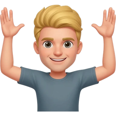 Homme blond cheveux court qui lève les bras avec mains ouvertes emoji