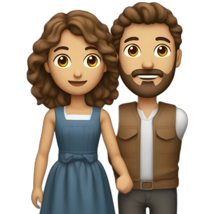 Homme brun avec barbe qui tiens une baguette qui pointe vers une femme brune en topcrop et jupe courte emoji | AI Emoji Generator
