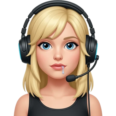casque jeux, femme, blonde, cheveux mi-long bave emoji