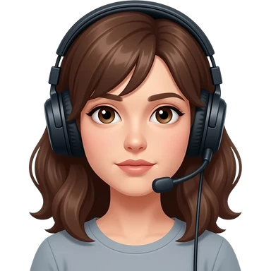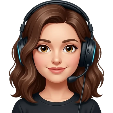 femme, brune, cheveux mi-long ondulé, casque jeux, emoji