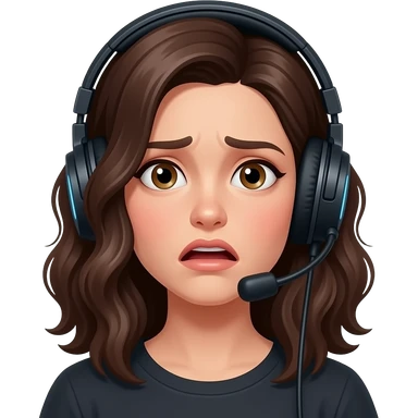 femme, brune, cheveux mi-long ondulé, casque jeux, perdue emoji
