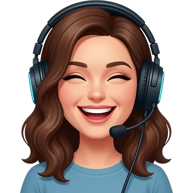 femme, brune, cheveux mi-long ondulé, casque jeux, rire emoji