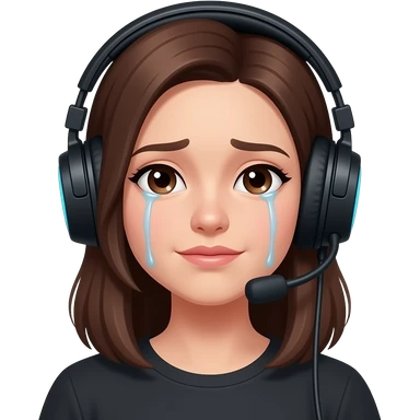 femme, brune, cheveux mi-long, casque jeux, pleure emoji