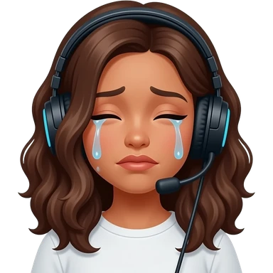 femme, brune, cheveux mi-long ondulé, casque jeux, pleure emoji