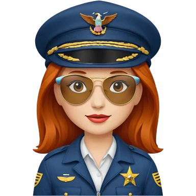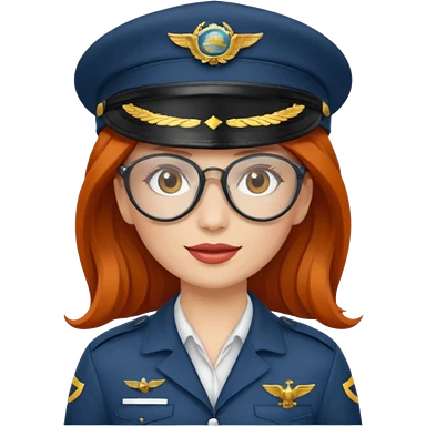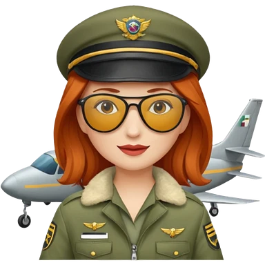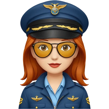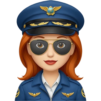 pilote d'avion femme rousse avec lunette de soleil et chapeau de pilote emoji