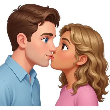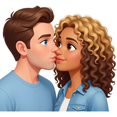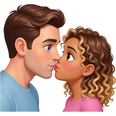Homme blanc cheveux châtain avec yeux bleu et fille métisse cheveux bouclés marrons et blonds avec des yeux marrons qui s’embrassent emoji