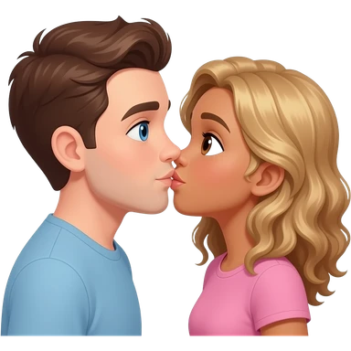 Homme blanc cheveux châtain avec yeux bleu et fille métisse cheveux bouclés marrons et blonds avec des yeux marrons et des lunettes rondes qui s’embrassent avec amour et passion emoji