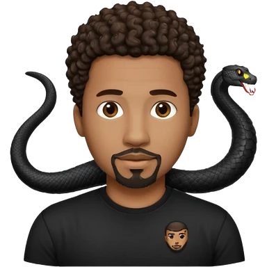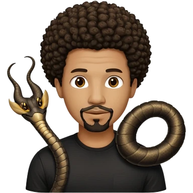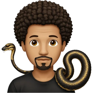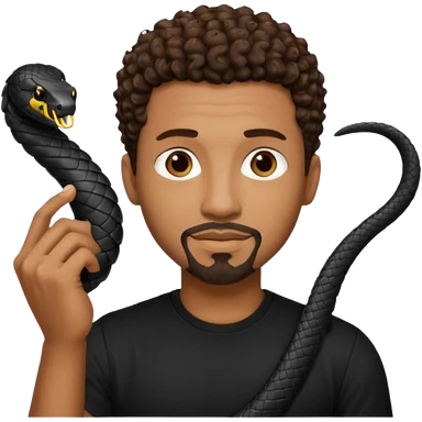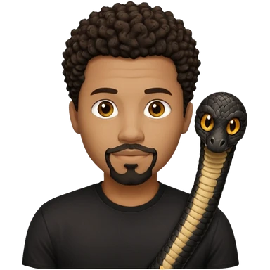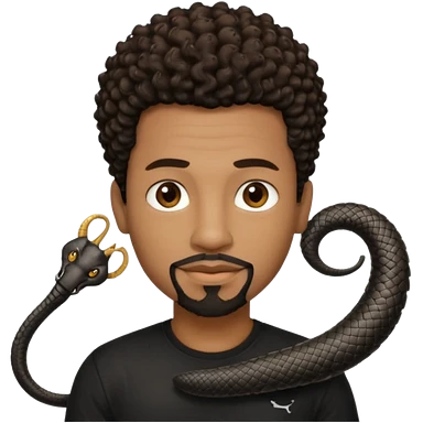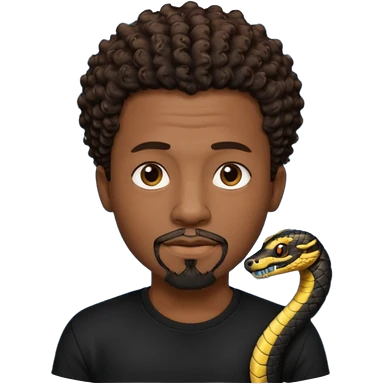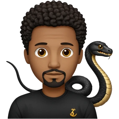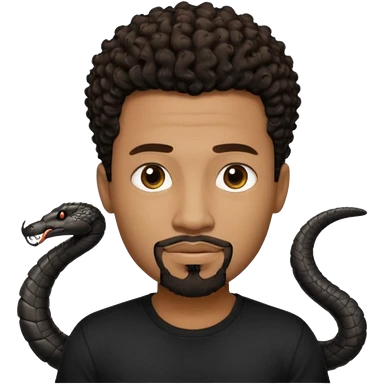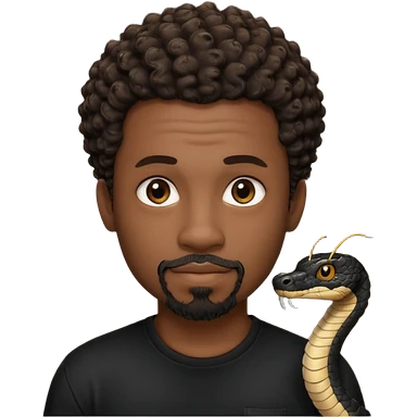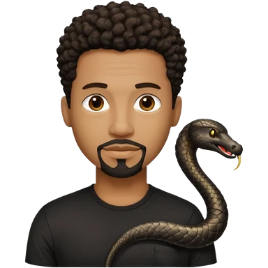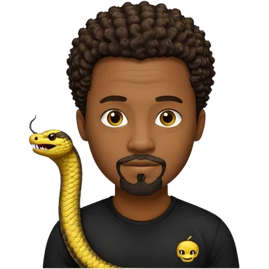 Homme couleur de peau noir, yeux marron avec un bouc que le menton, cheveux court avec dégradé sur le côté, avec un cobra à côtéemoji