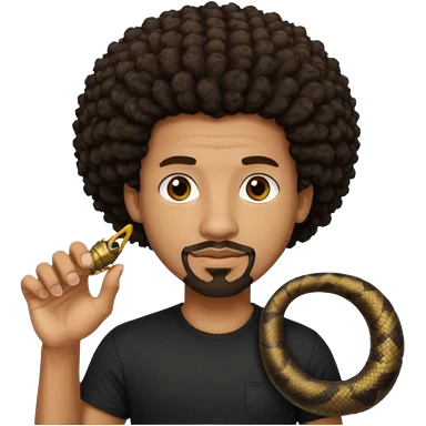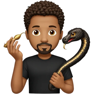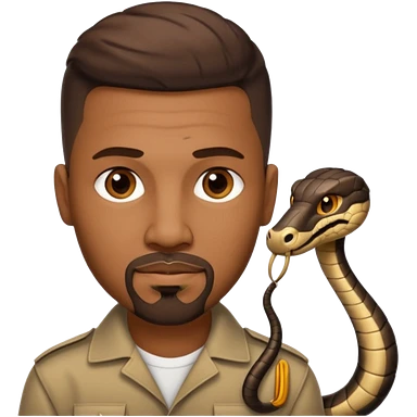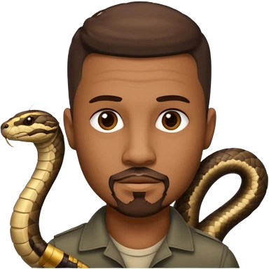 Homme couleur de peau noir, yeux marron avec un bouc que le menton, cheveux court avec dégradé sur le côté, avec un cobra à côté emoji | AI Emoji Generator