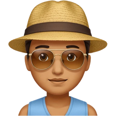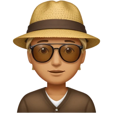 Homme en costard de couleur depau assez claire et un chapeau noie avec des lunette de soleil chic est une moustache gris emoji | AI Emoji Generator