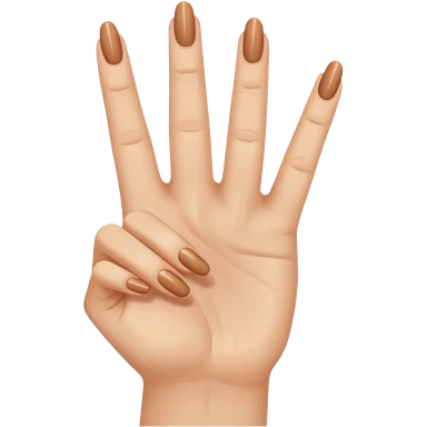 Une main humaine faisant le chiffre deux avec les doigts (index et majeur levés, les autres doigts repliés), fond neutre, photo réaliste. avec des ongles si possible emoji