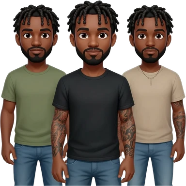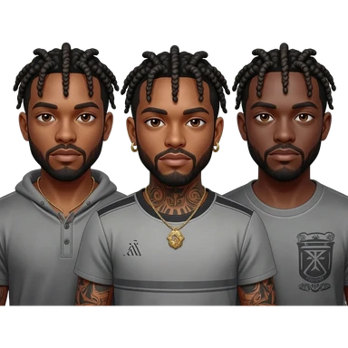 Un groupe d'hommes afro-américains aux cheveux tressés, portant des tattouages emoji