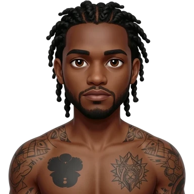 Une homme de 17 ans il a la peau noir foncé , des lèvres pulpeuses et un regard nonchalant. Il a un petit afro taper emoji