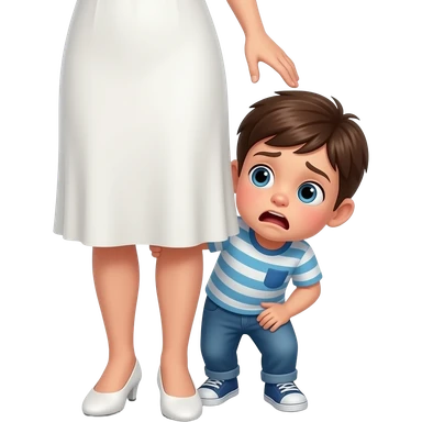 petit garçon peau noir qui a peur, se cache derrière femme blanche, on les voit de la tête aux pieds emoji
