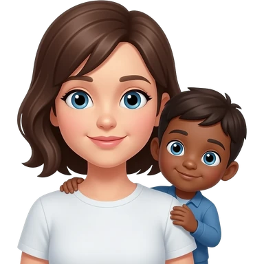 petit garçon peau noir, se cache derrière femme blanche emoji