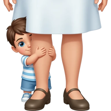 petit garçon peau noir, se cache derrière femme blanche, on les voit de la tête aux pieds emoji