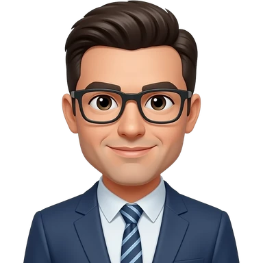 Homme blond foncé, cheveux courts, visage rond, avec une barbe naissante et des lunettes emoji