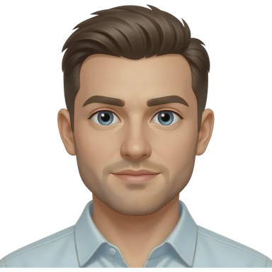 Homme blond foncé, cheveux courts, visage rond, avec une barbe naissante emoji