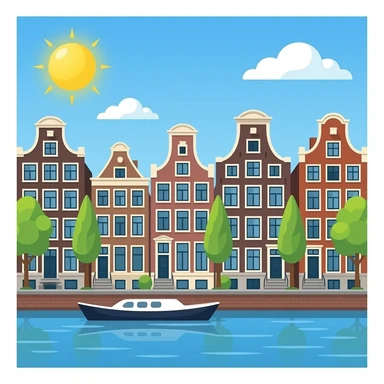 Cinematic Realistic Amsterdam Canal Houses Landmark Emoji, featuring narrow, gabled facades in vibrant colors. emoji