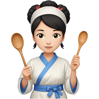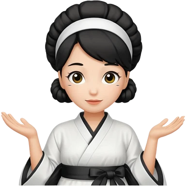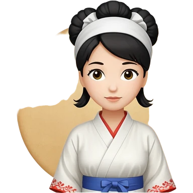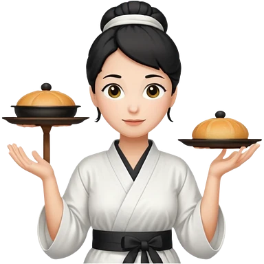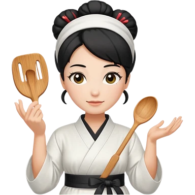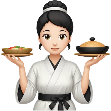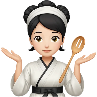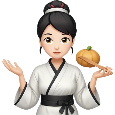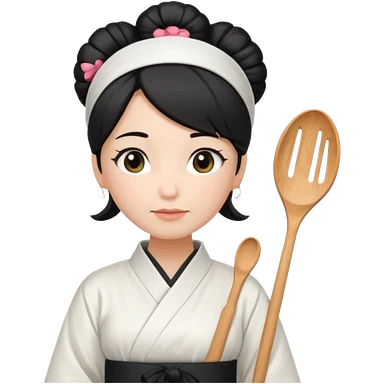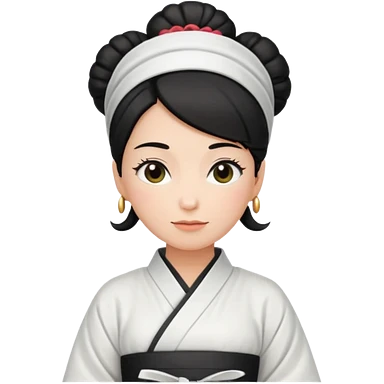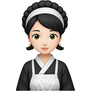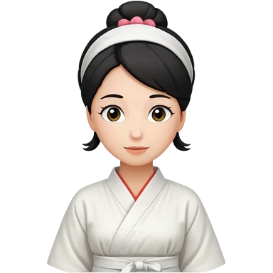 middle age mom with black bun wearing white home kimono and white apron emoji