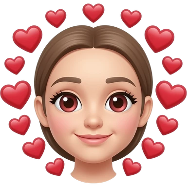 Un emoji classique avec plein de cœur autour de lui et avec les pommettes rouges emoji