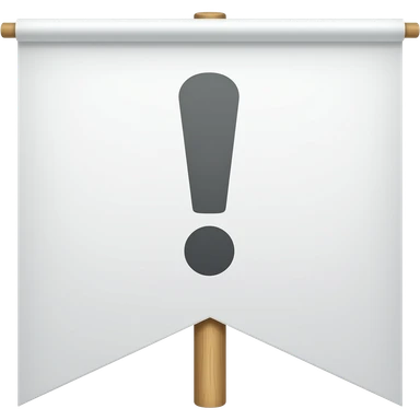 Pancarta de cartón rectángular blanca con un palo del centro de madera, de manifestación, con una exclamación en el centro emoji
