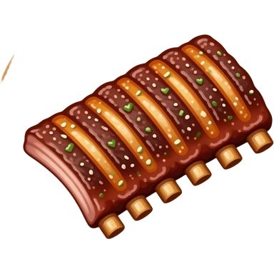 cinematic-realistic-barbeque-ribs-dish-emoji,-depicted-as-succulent,-slow-cooked-ribs-with-a-sticky-smoky-glaze-rendered-with-rich-textures-and-dynamic,-appetizing-lighting. baby back spare ribs emoji