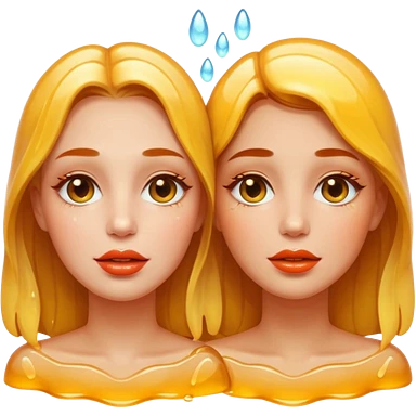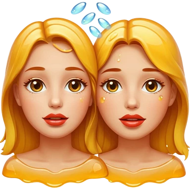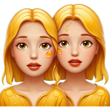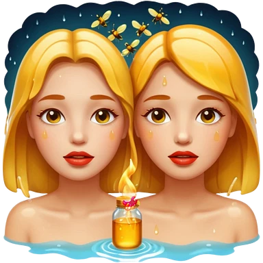 portrait two women wet faces and honey gloss lips touching, fireflies glowing emoji