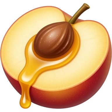 Honey dripping from the inside of peach slice emoji