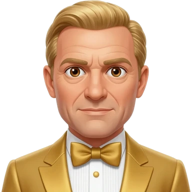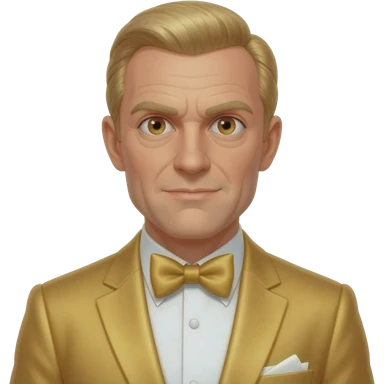 Auric Goldfinger from James Bond Series with brown eyes, blonde hair, gold suit with bow tie emoji