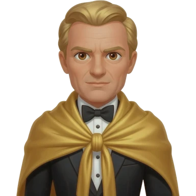 Auric Goldfinger from James Bond Series with brown eyes, blonde hair, gold shawl suit with bow tie emoji