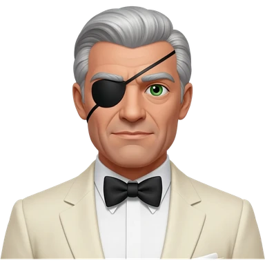 Emilio Largo from James Bond Series with green eyes, white hair, black eyepatch, ivory suit with bow tie emoji