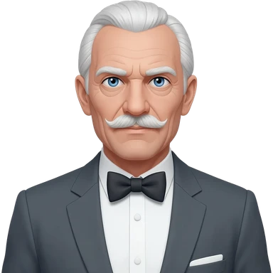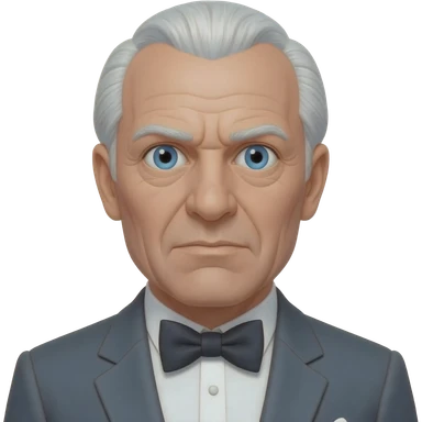 Ernst Stavro Blofeld from James Bond Series with blue eyes, white hair, charcoal gray suit with bow tie emoji