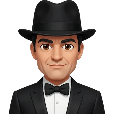 James Bond from James Bond Series with blue eyes, black hair, black suit with bow tie emoji