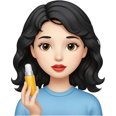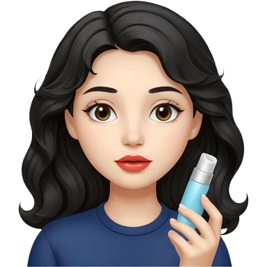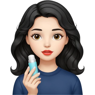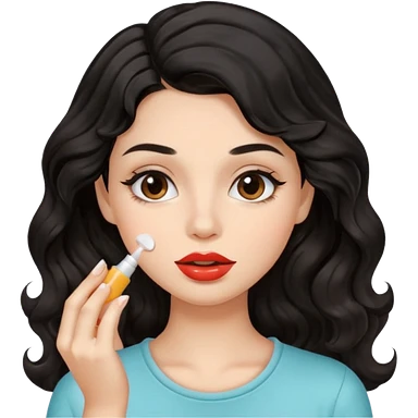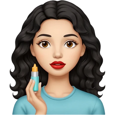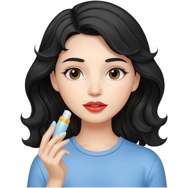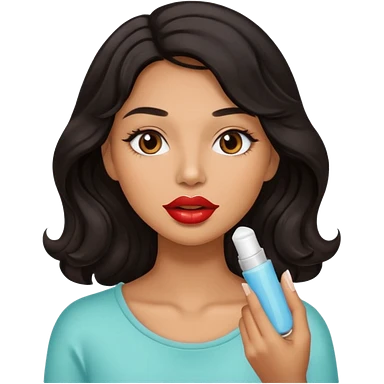 A gorgeous with black wavy hair women applying cute thin lipbalm on her brown lips emoji