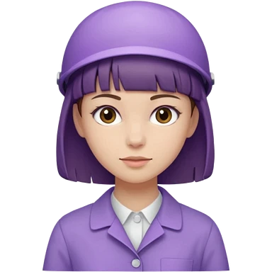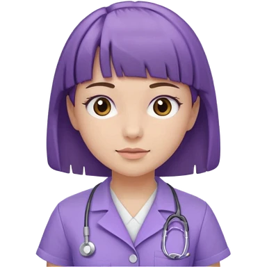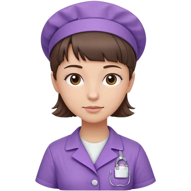A young female slim nurse with short Brown hair with fringe over her forehead, wearing larvendar purple working cloth emoji