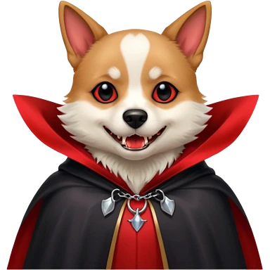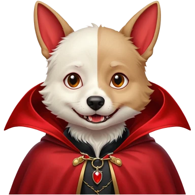 { "type": "object", "look": "dog in red collar cloak", "description": "a loyal vampire dog wearing a red collar cloak" } emoji