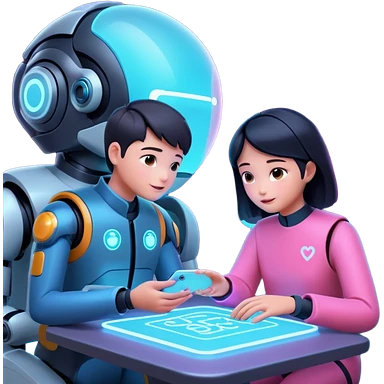 A hopeful 2026 future where humans and AI collaborate peacefully, soft neon lighting, cinematic, ultra-detailed, modern aesthetic emoji