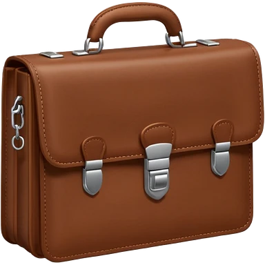 A 3D cartoon brown leather briefcase with a metal clasp, placed on a clean surface, soft studio lighting, Memoji-style realism. emoji