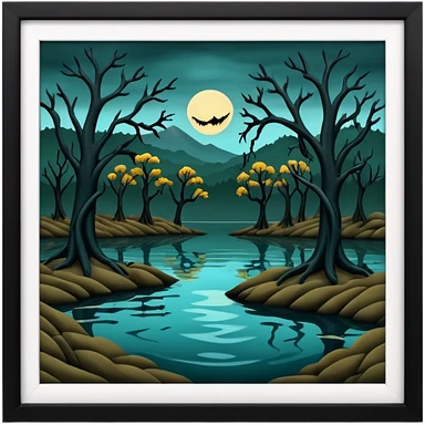 Beautiful lake during the fall, felt texture, scrapbooking emoji