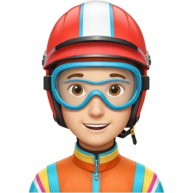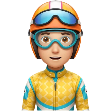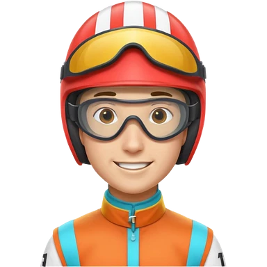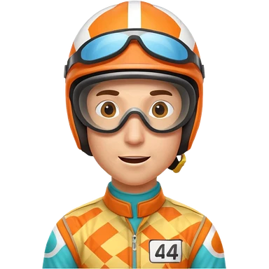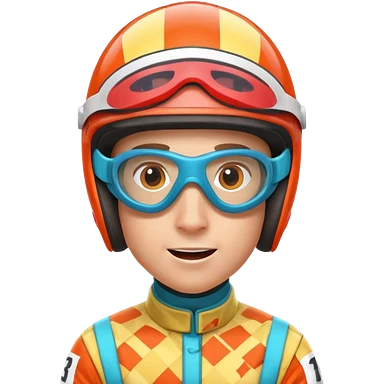 horse race jockey portrait, head and shoulders only, bright patterned racing uniform, helmet and goggles, energetic expression, 3D cartoon, mobile game icon style, clean background, no text, no watermark emoji