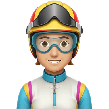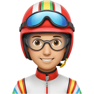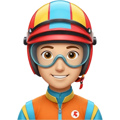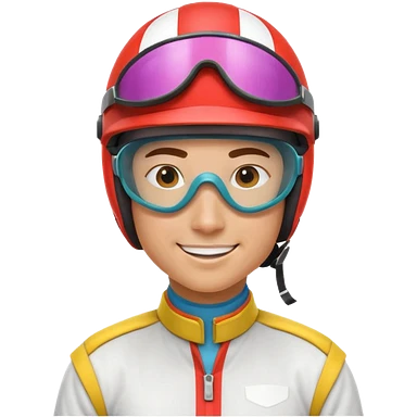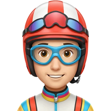 horse race jockey portrait, head and shoulders only, wearing colorful racing helmet and goggles, sporty uniform collar, confident smile, 3D cartoon, mobile game icon style, clean background, no text, no watermark emoji