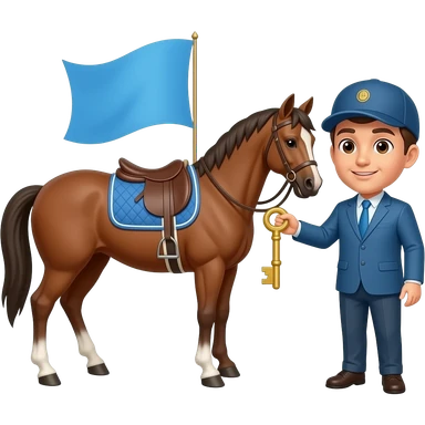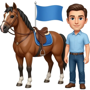 Horse with a blue flag on it and a person here emoji