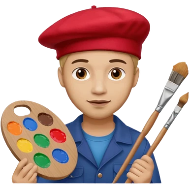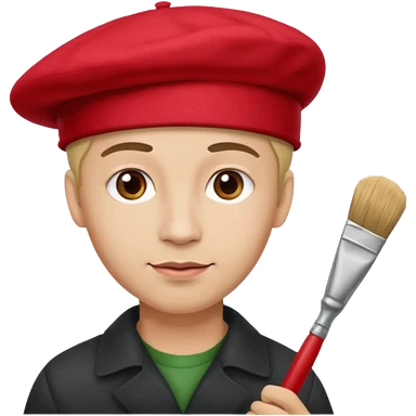 AN ARTIST IN A PURPLE BERET WAVES HIS HAND emoji